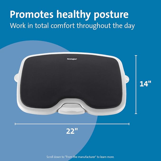 Kensington Foot Rest For Under Desk At Work, Smartfit Comfort Memory Foam Angle and Height Adjustable Footrest, Non-Skid Foot Stool For Under Office Desk, White/Black K56144USF