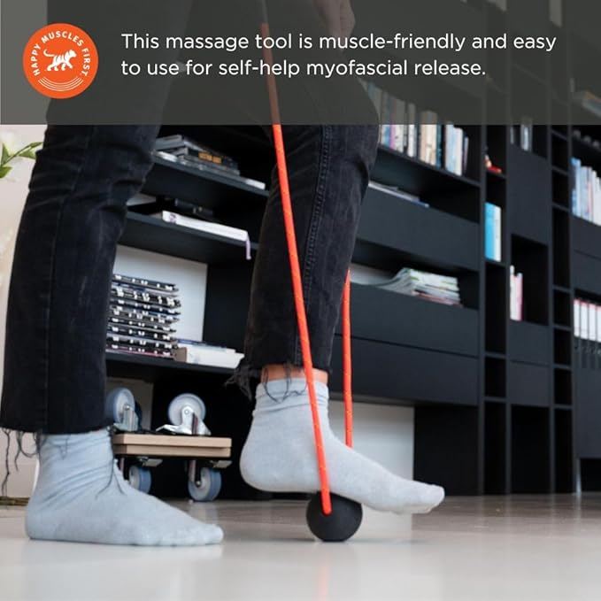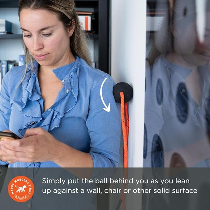 - MASSAGE BALL - 2.6" massage ball glides easily along a 47" long guide rope to massage muscles, release muscle knots, & reduce muscle tension. and keeps the ball in place so the ball won’t fall on the ground! Applies pressure and compression directly to sore, tight muscle knots in hard-to-reach areas of your back, shoulders and neck without the help of a buddy. Also works great on hips, piriformis and glutes.