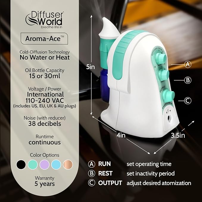 Waterless Diffuser for Essential Oils 12V Aroma-Ace™, Made in USA Green Aroma Atomizer Waterless Essential Oil Diffusers for Home Large Room, Air Aromatherapy Home Scent Diffusers