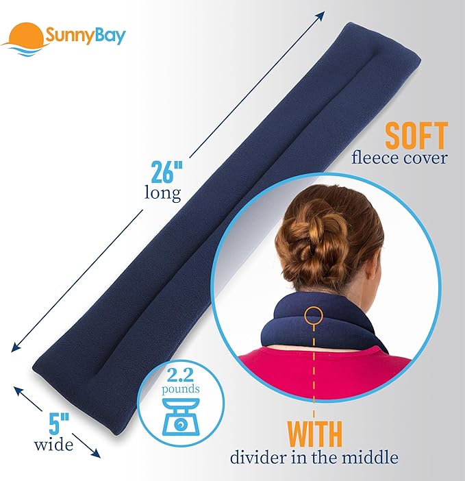 SunnyBay Microwave Heating Pad for Neck and Shoulders, 2.2 lbs 26 inch Long Versatile Microwavable Neck Wrap Warmer or Cool Pack, Hot or Cold Therapy to Relax Sore Muscles (Blue)