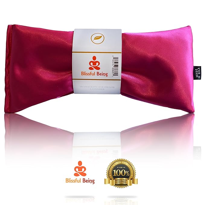 Lavender Eye Pillow - Hot or Cold Weighted Satin Eye Mask perfect for Sleeping, Yoga, Meditation - Gifts for Women, Birthday, Teachers - Natural Herbal Relaxation (Hot Pink)