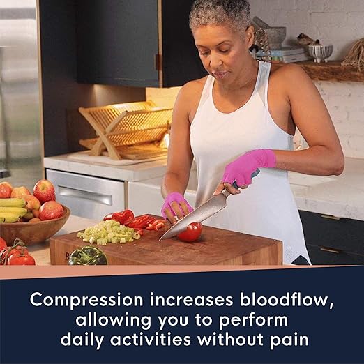- FIND THE STRENGTH TO HEAL. Copper Compression's Arthritis Gloves provide you with the compression you need to help reduce swelling and pressure, increase blood flow, restrict excess fluid build-up, and relieve aching and soreness in joints. The therapeutic value of these fingerless gloves provides support in managing medical conditions such as: arthritis, carpal tunnel, tendonitis, typing, texting, purlicue pain and repetitive stress injuries.