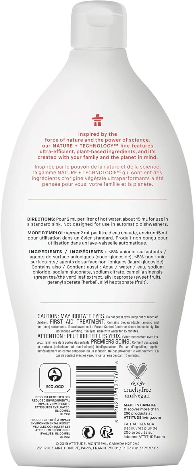 ATTITUDE Dish Soap, EWG Verified, Plant-Based & Vegan Dishwashing Liquid, Naturally Derived, Pink Grapefruit Scent, 23.7 Fl Oz