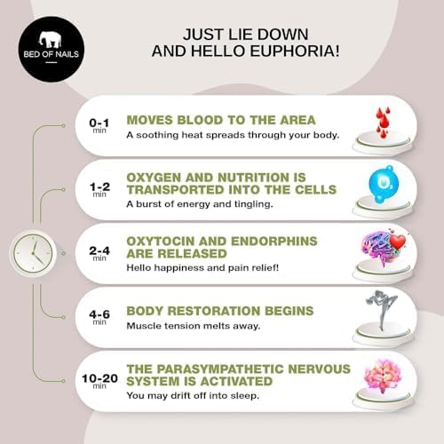 - EASY TO USE: Just lie down on or against our comfortable accupressure pillow for at least 10 minutes and hello euphoria! As trigger points massage your skin, they stimulate oxytocin for calmness and ‘happiness’ endorphins that block pain and ease insomnia or restlessness. The cushion is great for travel and can be used for yoga, at the gym, in bed, on the sofa, at home or at the office for head to toe therapy treatment
