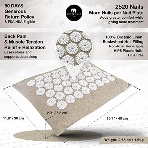 Bed of Nails Original Premium Comfortable ECO Acupressure Pillow Flat Cushion, 2520 Acupuncture Pressure Points for Neck Pain, Back Pain, Stress Relief, Linen Tote Bag, 16x11x4