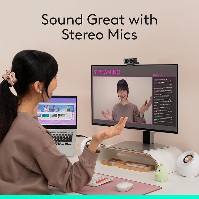- "Stereo audio with dual mics: Capture natural sound during calls and recorded videos with this 1080p webcam, great as a video conference camera or a computer webcam.