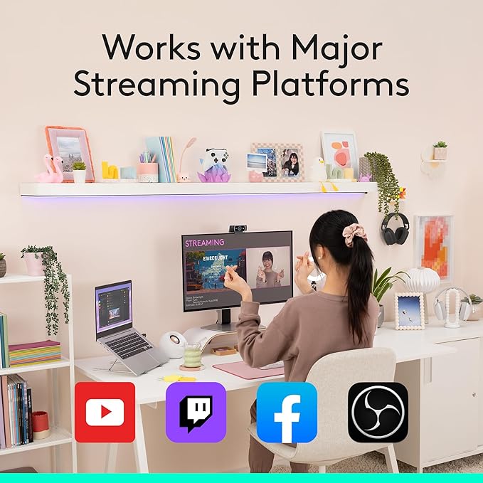 - HD lighting adjustment and autofocus: The Logitech webcam automatically fine-tunes the lighting, producing bright, razor-sharp images even in low-light settings. This makes it a great webcam for streaming and an ideal web camera for laptop use.