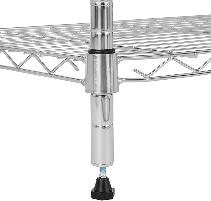 - Durable steel construction with a Chrome finish; each shelf holds up to 250 pounds, evenly distributed; 750 pound total weight capacity