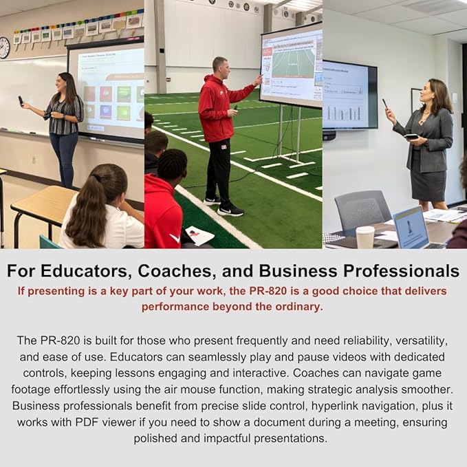 - Long-Range RF Stability: Wireless presentation clicker with 50ft RF range, no line of sight needed. Outperforms Bluetooth for stable control in larger rooms — a high school classroom must haves.