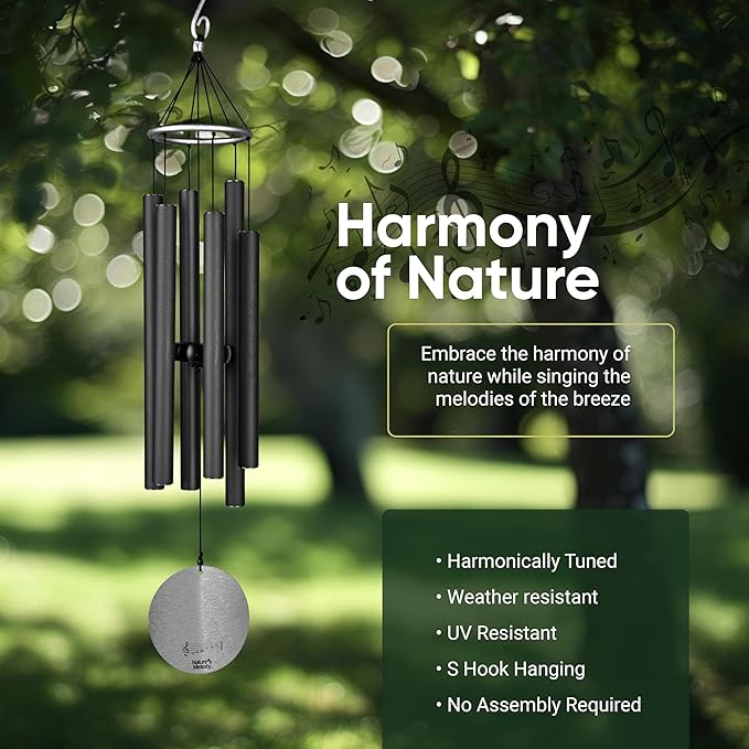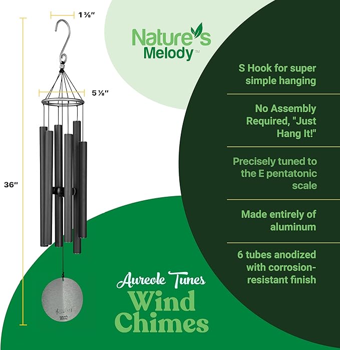 Nature’s Melody Aureole Tunes Wind Chimes – Outdoor Windchime with 6 Tubes Tuned to E Pentatonic Scale, 100% Rustproof Aluminum, Powder Finish & S Hook Hanger for Sympathy, Memorial Gift or Zen Garden