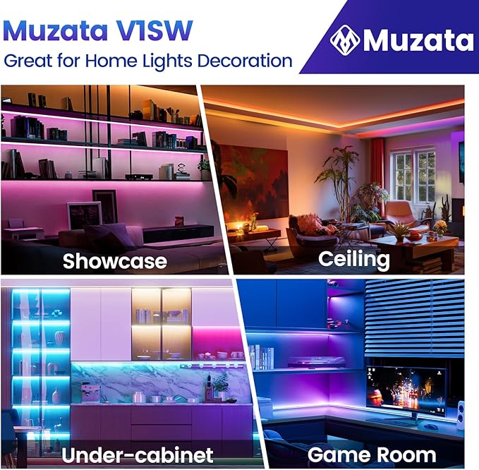 - Create ambient lighting with Muzata: Muzata provides various lighting fixtures for you to achieve personalized ambientone-stop home lighting. We suggest using V1SW for cabinet and bookshelf lighting, U108 for truly spotless lighting effect, U131 for living room ceiling lighting help you create a welcoming and lively atmosphere