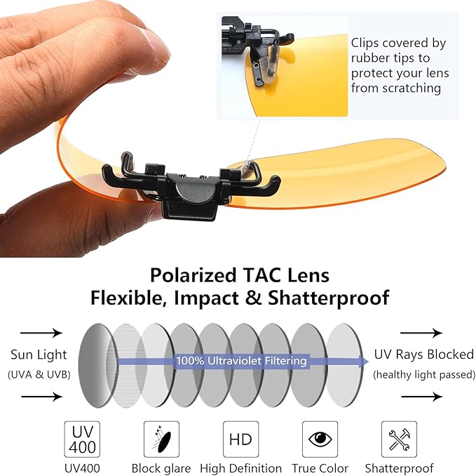 - Clip on your Prescription Glasses - Fits both metal and plastic frames, no need to buy expensive prescription sunglasses