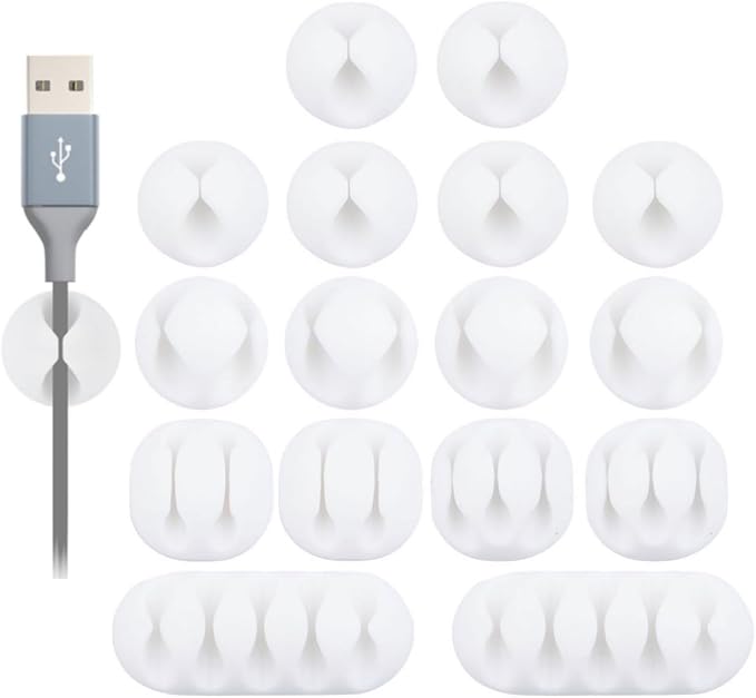 OHill Desk Cable Management Cord Organizer, 16 Pack White Self Adhesive Cord Holder Cable Clips, Ideal Cable Organizer Wire Keeper for Desk, Nightstand, Phone Charger, Computer, Home, Office, Car