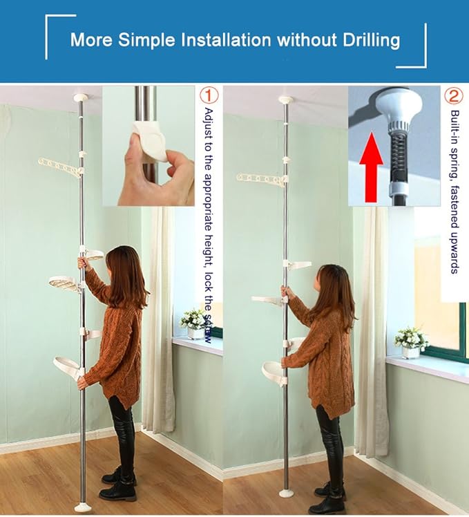 - PRODUCT SIZE(2 size):H(5ft8.9in-7ft8.5in) H(7ft6.5in-9ft6.1in) In The height can be adjusted by drawing the pipe,and you can adjust the height of the hangers also