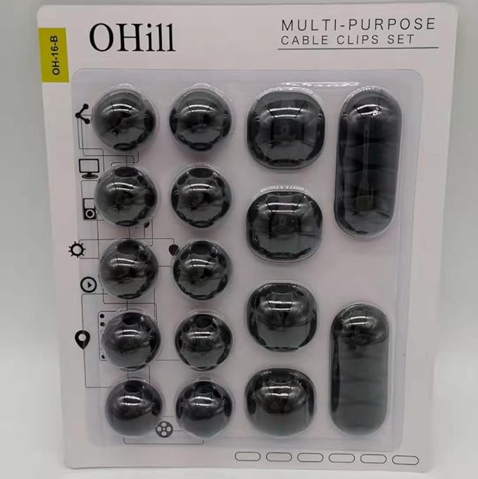 - 16-Pack: Come with 16-pack different size black cable clip holders, more size for all family member