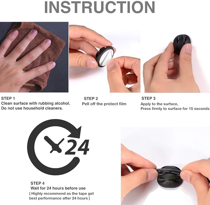 - Easy Use: Simply peel and stick your adhesive cable clip anywhere. Please kindly take a moment to the surface before sticking them which make them holding tight