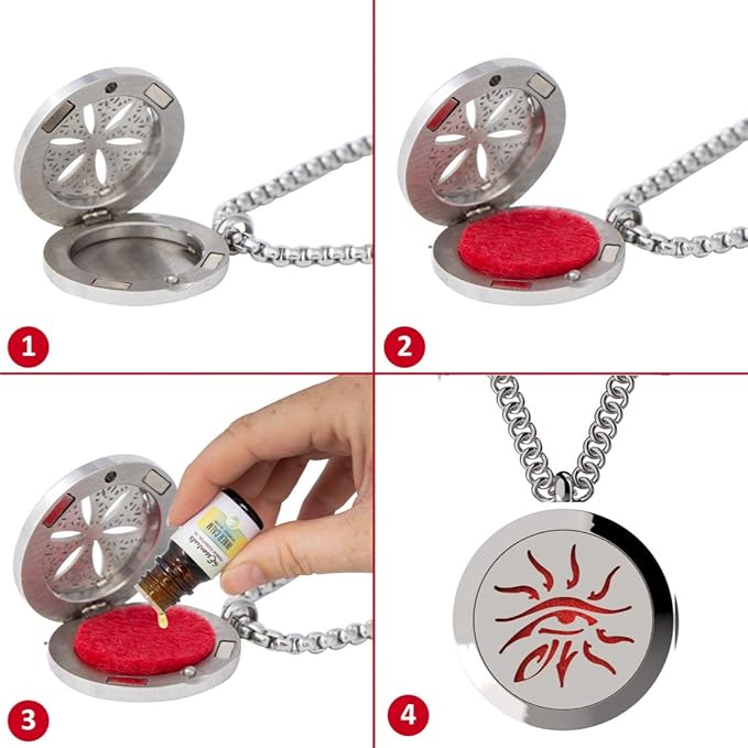 - Tree Of Life and Wisdom Eye Essential Oil Diffuser Necklace Stainless Steel Locket Pendants with 24" Chains + 12 Refill Pads