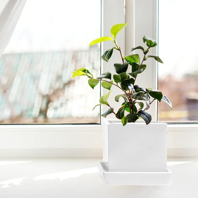 - Beautiful, Yet Practical — This set of 3 Cube and Saucers indoor plant pots is made from fully glazed porcelain and features a practical drainage hole and saucer. Each ceramic plant pot measures 3” tall and 3” in diameter, and can be easily cleaned with warm soapy water.