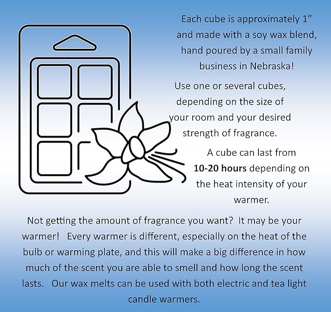 - Approximately 3 ounces of wax per package, for a total of 18 ounces, and 36 cubes..