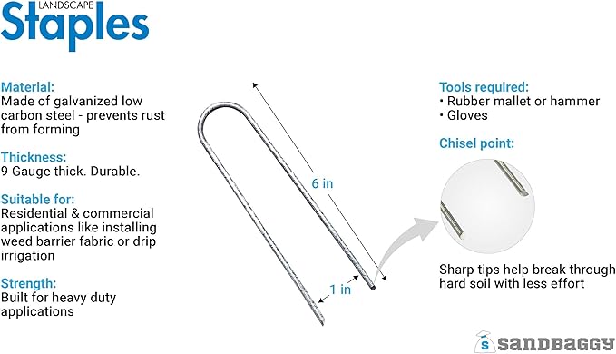 - #1 BEST SELLING BRAND: Sandbaggy landscape staples can be found securing landscape fabric & irrigation piping on job sites, national parks, and airports across America. That’s why we are the #1 best selling brand of landscape staples on the Internet, with over 25 million Sandbaggy landscape staples installed across this great country.