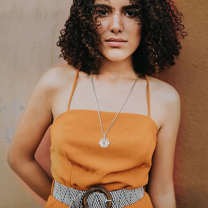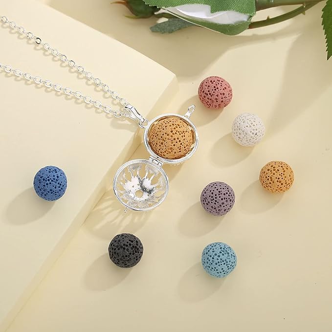 - INFUSEU - Trusted brand, Premium Silver Plated Copper and highly polished (Pendant + 24" Chain); 7 PCS 0.7" round lava stones of random colors