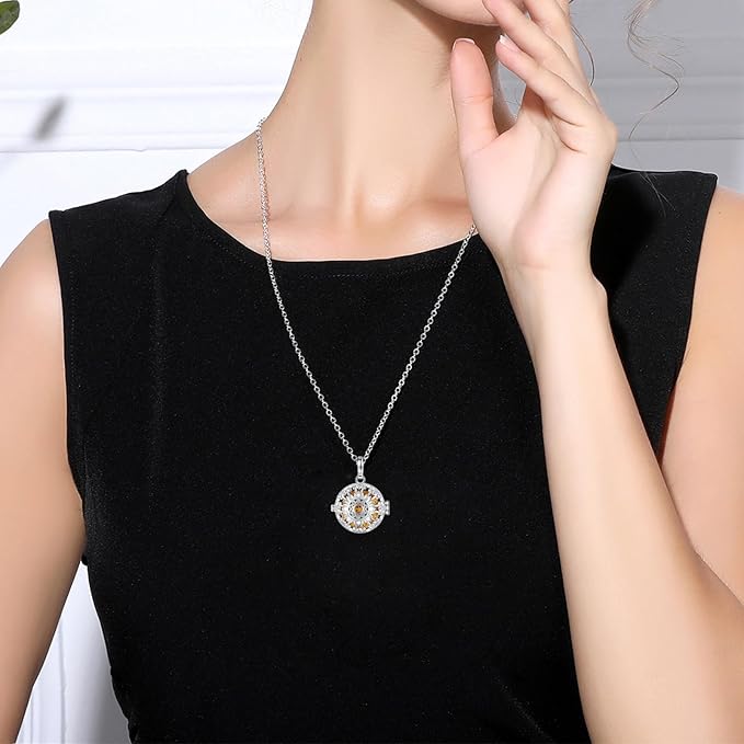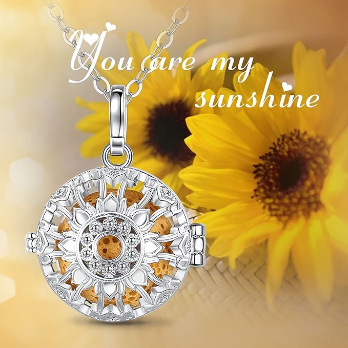 INFUSEU Aromatherapy Gifts Sunflower Necklaces for Women Essential Oil Diffuser Jewelry Lava Rock Stone Pendant Aroma Perfume Spiritual Items for Meditation Yoga