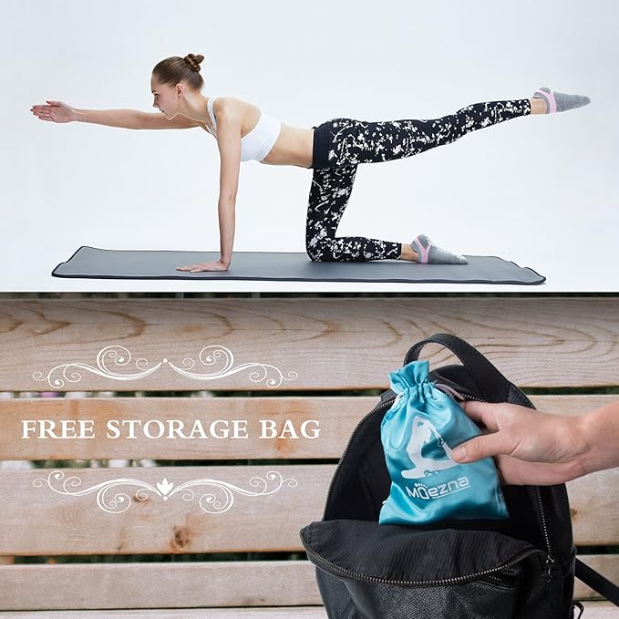 Muezna Non Slip Yoga Socks for Women, Anti-Skid Pilates, Barre, Hospital Socks with Grips, Size 5-10