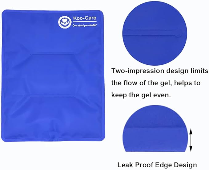 - Extra-Large Size. Compared to the general small ice packs, this Koo-Care XL gel pack (11'' x 14'') can cover a wider area. Filled with enough 2.2 lbs of gel, this ice pack has a powerful ability to keep cold or hot longer. The unique design of this cold pack makes the gel distributed evenly and the gel will not easily clump together unlike other large cold packs.