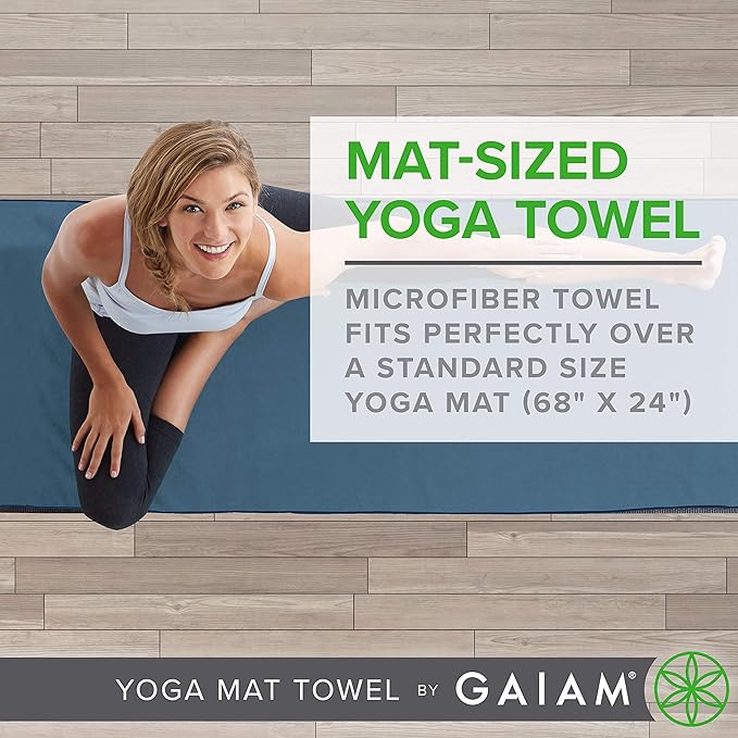 Gaiam Yoga Mat Towel Microfiber Mat-Sized Yoga Towel for Hot Yoga