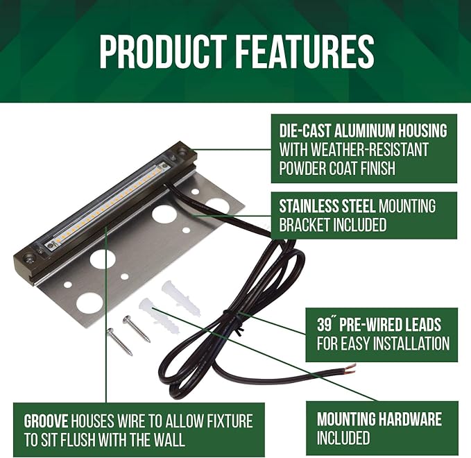 GKOLED UL Listed LED Hardscape Light, Retaining Wall Lights, 6.8 Inch Integrated 2700K LED Chips, Step Paver Wall Light, Solid Powder Coated Die-cast Aluminum Housing, 4W Low Voltage 12V AC/DC, 1 Pack