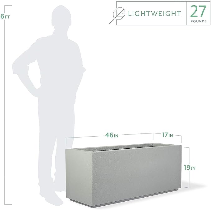 PolyStone Milan Tall Modern Outdoor/Indoor Rectangular Trough Planter, 46" L X 17" W X 19" H, Lightweight, Heavy Duty, Weather Resistant, Polymer Finish, Commercial and Residential (Concrete Gray)
