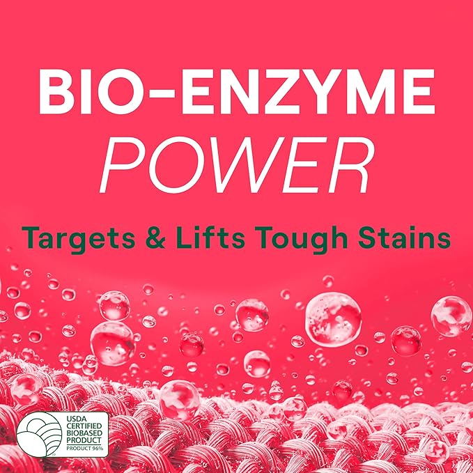 - Powerful triple-enzyme formula fights tough stains