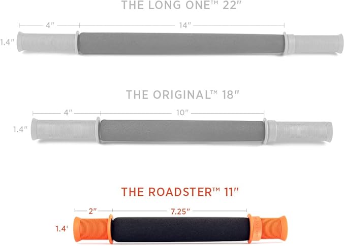 Tiger Tail 11in Massage Stick Portable Roller, Handheld, Deep Tissue Foam Roller for Legs, Neck, Calves, Thighs, Shins & Back, The Roadster 11, Made in USA, Orange Black