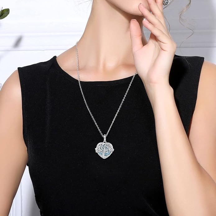 INFUSEU Tree of Life Pendant Aromatherapy Necklace for Women Essential Oil Diffuser Jewelry Healing Lava Rock Stone Heart Spiritual Gifts Items for Meditation Yoga Aroma Perfume