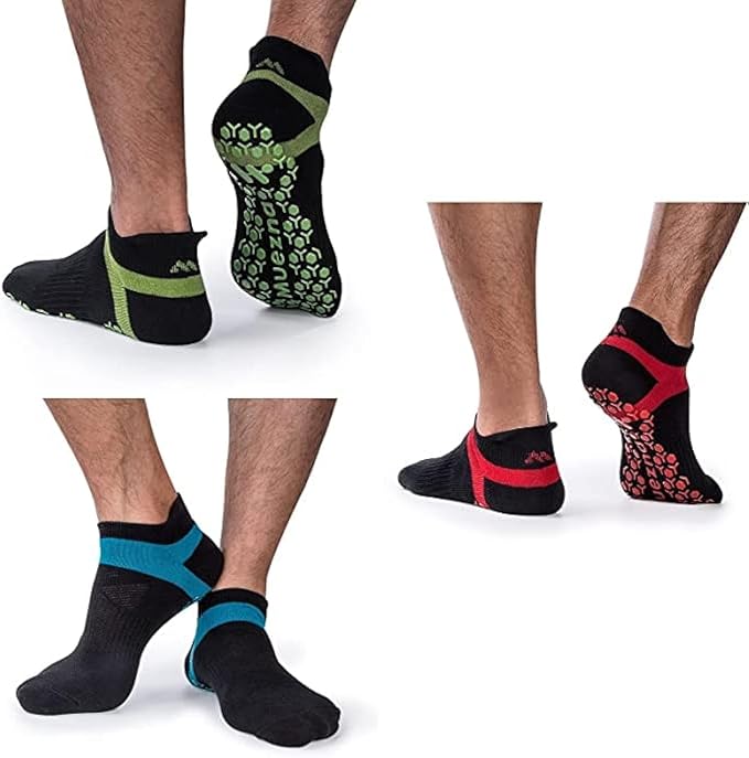 Muezna Men's Non-Slip Yoga Socks, Anti-Skid Pilates, Barre, Bikram Fitness Hospital Slipper Socks with Grips