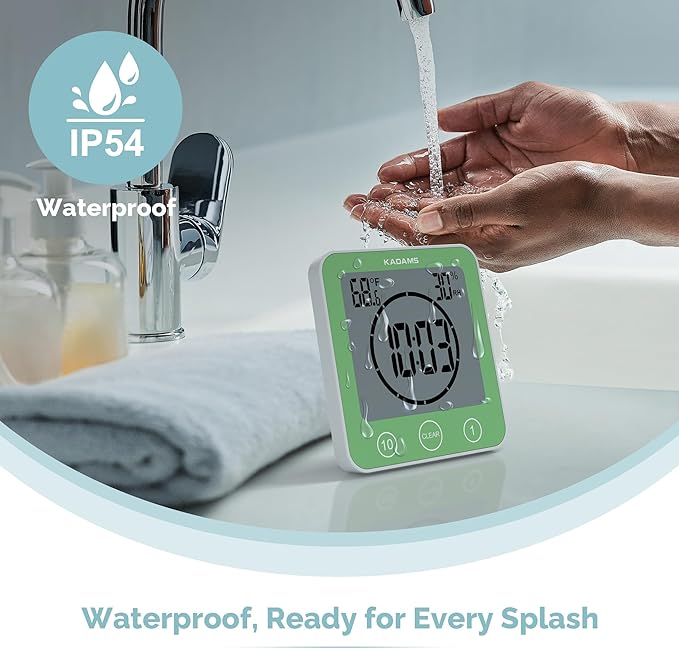 - 【 Efficient Time Management】Stay organized and save resources with KADAMS waterproof shower timer clock, featuring an LCD touch display, designed to help you keep track of your daily schedule.