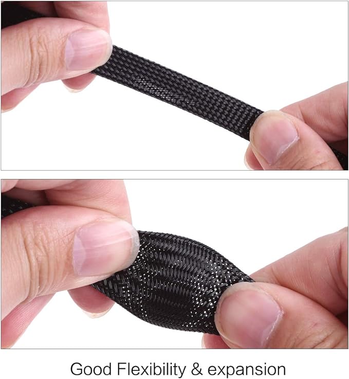 - Size: Diameter: 1/2"| Length: 100 Feet | Color: Black. Diameter expands by 50% . Our PET Expandable braided sleeving is made from PET