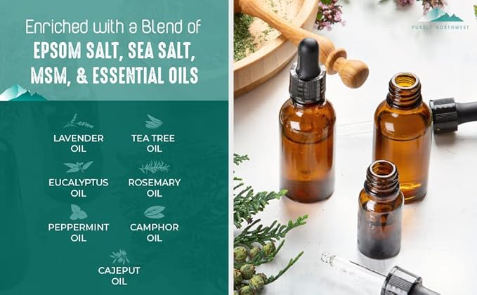 Epsom Salt Tea Tree Foot & Body Soak-Toenail Repair & Ingrown Nails, Athletes Foot Burning & Itching-Stubborn Foot Odor & Softens Callouses-Purely Northwest-USA 2 LB