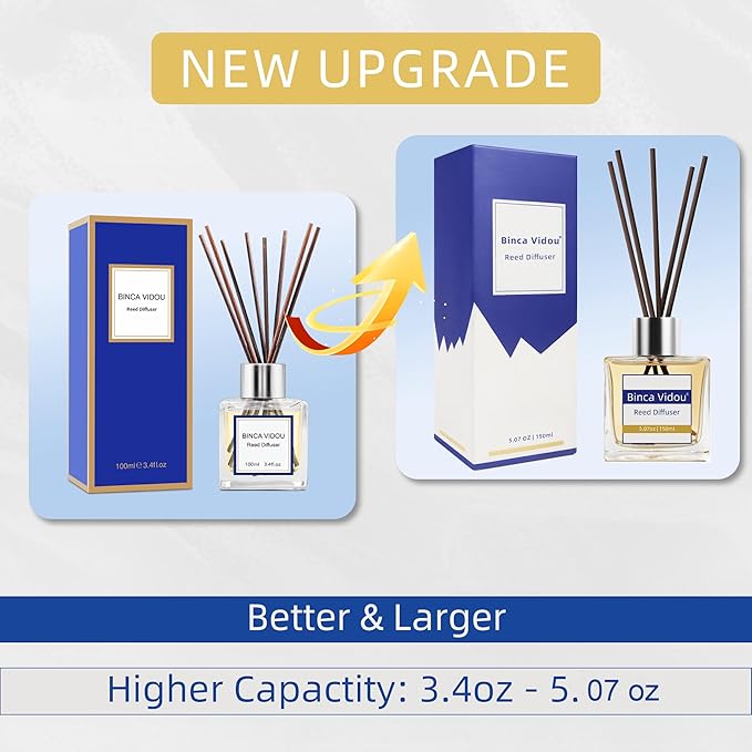 - ๐ Easy Intensity Control - 8 fiber reeds with 150ml Concentrated High-Quality Fragrance Oil. By adding or removing the reeds from the bottle, you can control the intensity of the fragrance, or flip the reeds regularly for a burst of fresh scent.