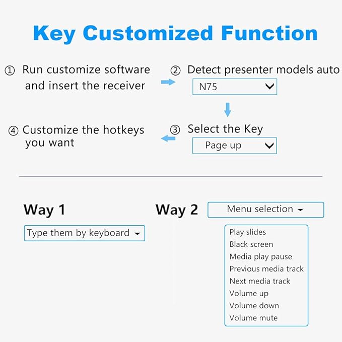 - Reprogrammble button - You can reconfigure the button functions to suit your individual needs via Norwii Presenter software.