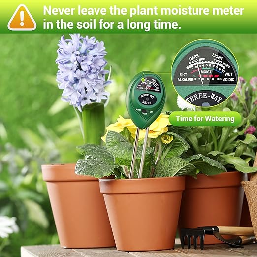 - 3-In-1 functions: tests moisture, PH value and light level by using two 20cm probes and a light sensor