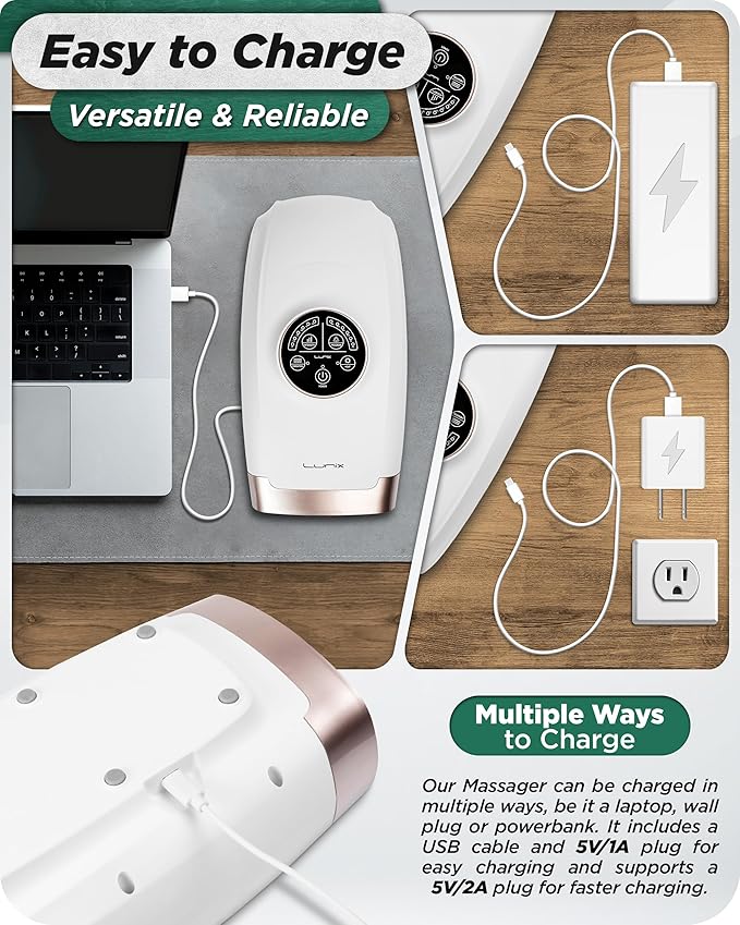 - Gentle Heat Function with Helpful Tips – The LX3 gradually warms up to a mild 107°F. The heat may feel subtle as your skin adjusts or while under compression. For a warmer sensation, wear light gloves during your session. Note: This is not a high-heat device—it is designed for soothing comfort.