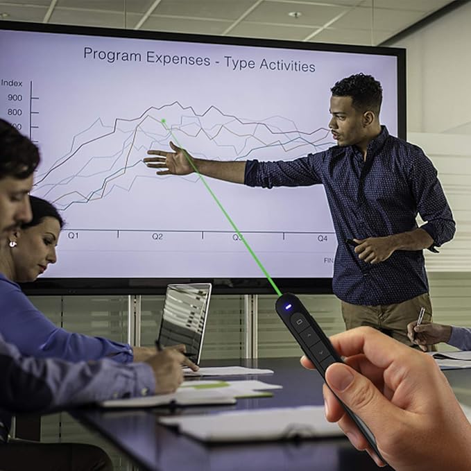 - ✅Wireless presenter equipped with top-grade microchip, wireless control distance up to 39feet. The Green laser pointer is not only 10 times brighter than red laser, it’s also vibrant, easier to draw audience’s attentions.(Not recommended to use on LED/LCD/TV)