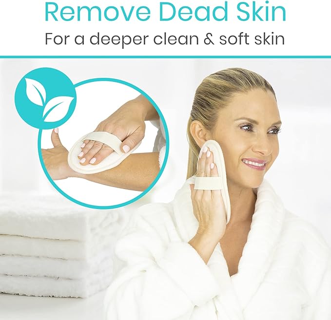 - OVAL LOOFAH PAD: Made with a coarse loofah, the oval pad is perfectly sized to target rough patches of skin. The oval scrubber includes a hand strap for ease of use while showering and a hanging loop for convenient storage.