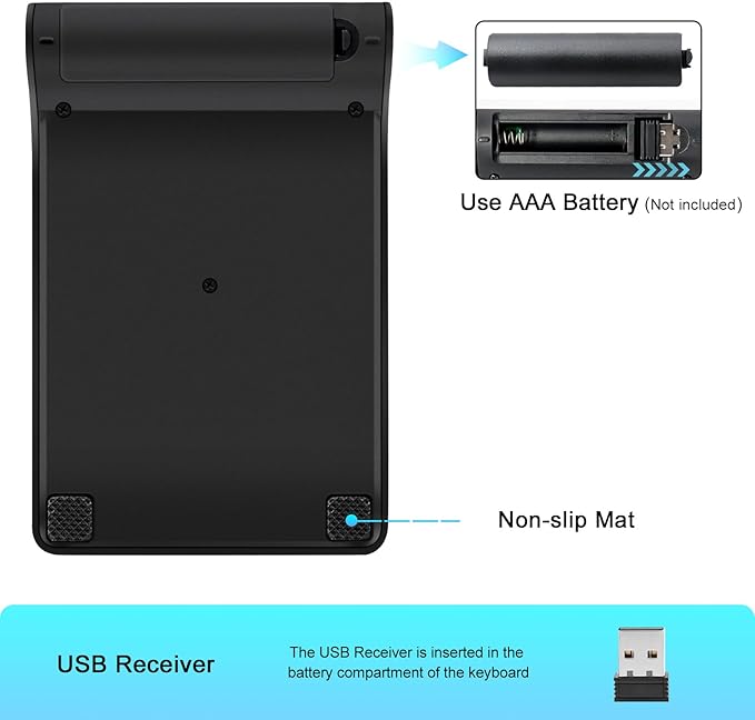 - 2.4GHz WIRELESS CONNECTION - Using advanced 2.4GHz wireless technology, plug and play, no additional drivers required. Signal transmission stability, working range up to 33ft. (The USB Receiver is inserted in the battery compartment of the keyboard.)