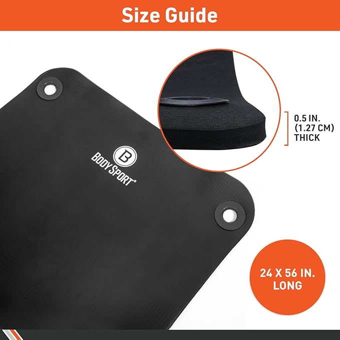 - Sized Right. This BodySport TPE Exercise Mat is ½ x 24 x 72 in. making it perfectly sized for easy portability.