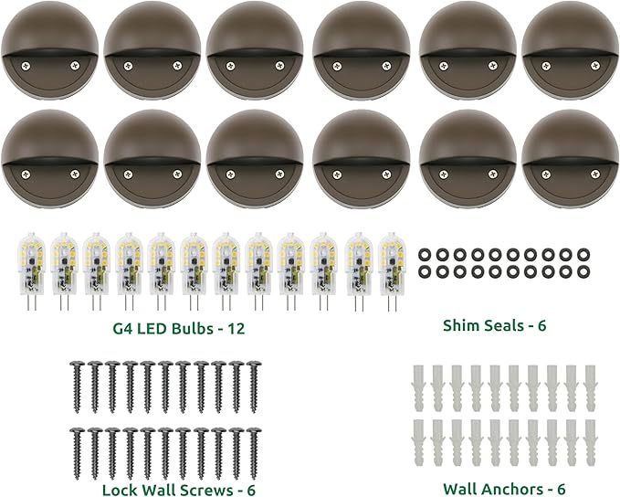 Lumina Lighting® 2W Landscape Deck Lights (12 Pack) Low Voltage Landscape Deck Lights Waterproof - Outdoor Patio Step Deck Lighting 12V 3000K Replaceable G4 LED Bulb Included DSL0103-BZLED12 (Bronze)