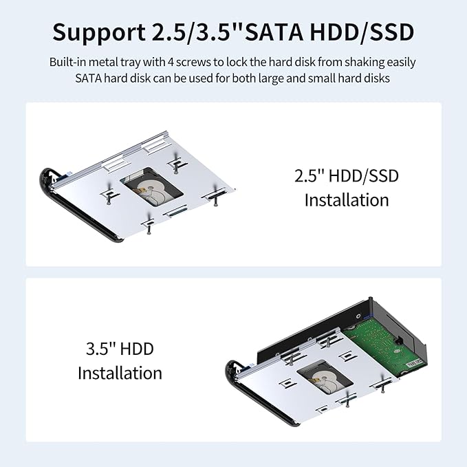 - 【Separate Base as a Gift】The main part can be carried separately when going out,making it more portable.With the Separate Base,the hard drive enclosure can stand on the desktop, increased the use area of the desktop . enjoy the fun of DIY screw installation, fully enclosed hard drive enclosure, no need to worry about hard drive exposure and damage the file.