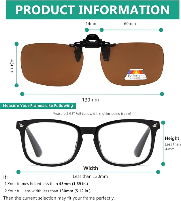 • EYEKEPPER POLARIZED FLIP UP SUNGLASSES DESIGN: Eyekepper newest design creates a fashionable and powerful product; follows the latest style creating unique looks for mens and womens polarized clip on sunglasses, offers a timeless model that combines great fashion styling with quality, performance and comfort. Protect your eyes with highly durable wrap-around lens and stylish frame.