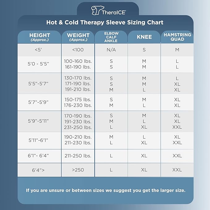 - CUSTOM SIZING FOR EVERY BODY TYPE: Available in five sizes from S to XXL, this ice sleeve for knee ensures a snug, supportive fit. Works as a knee brace for men, knee sleeves for men, or compression knee brace for women. Great for daily use or injury recovery, it's also a hot compress or ice pack knee wrap. Combine with flexible ice packs reusable or cooler ice packs for added comfort. It’s one of the most versatile knee pain relief products and ideal for warm compress or cold therapy sessions.